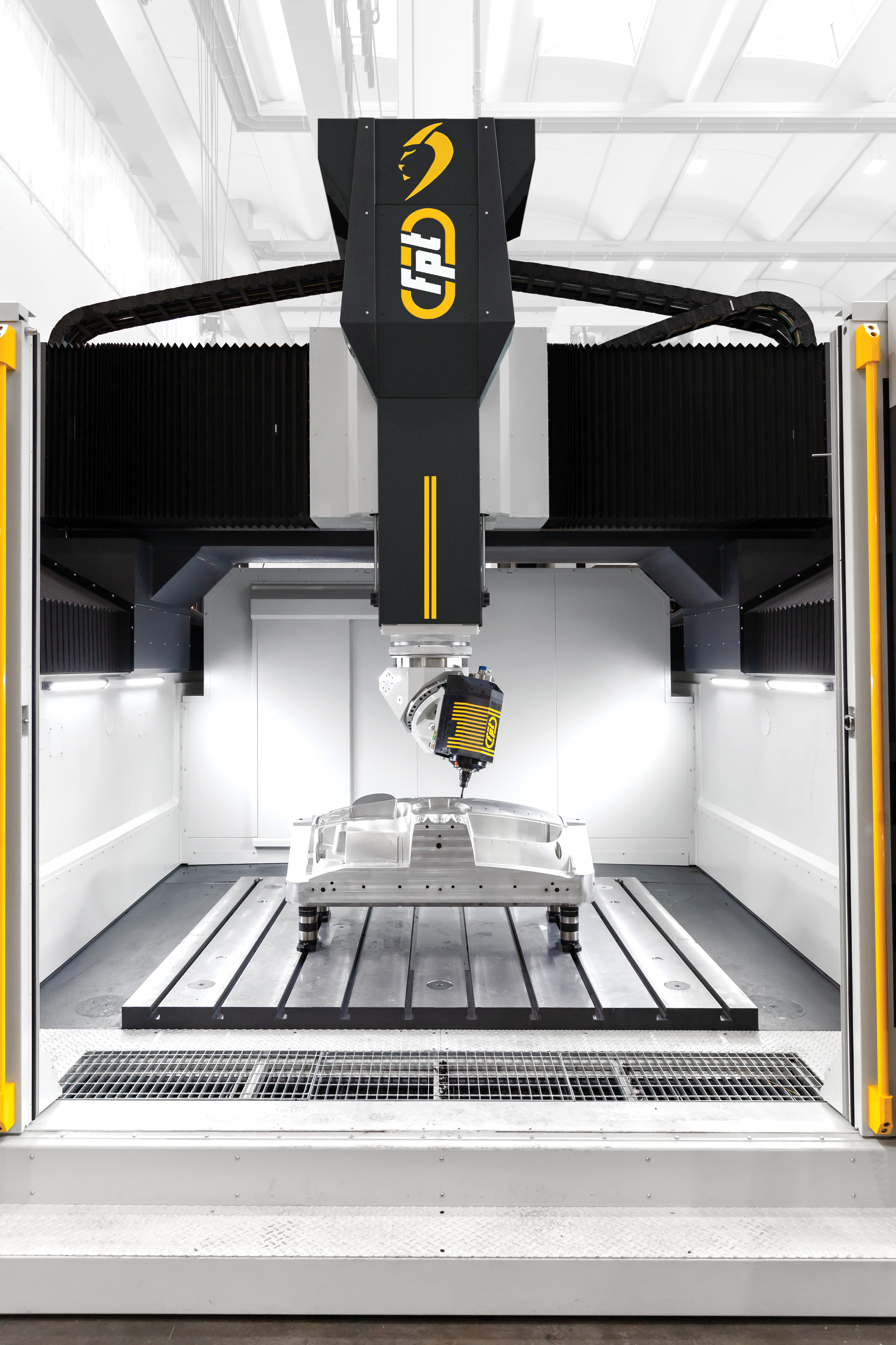 - 5-axis capability: Direct-drive fork head with continuous rotation delivers precision and freedom in machining complex geometries.