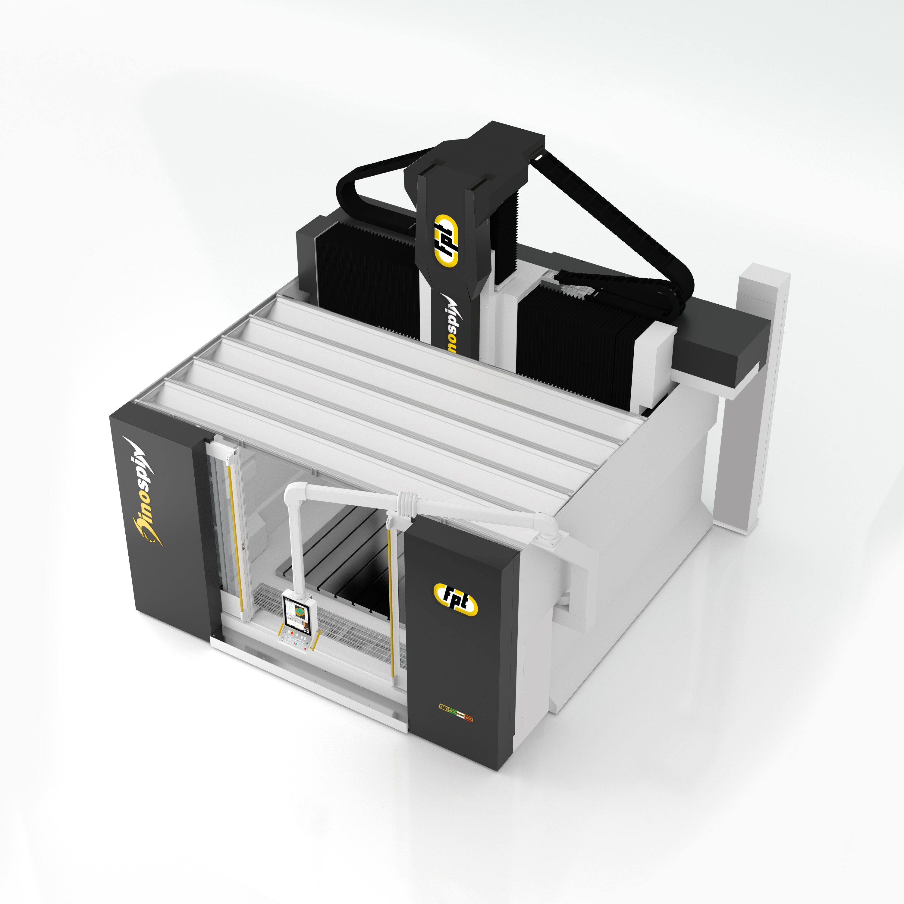 Dinospin is a versatile vertical milling machine designed for high-speed, high-precision machining of complex components. Equipped with advanced fork-head technology and high-frequency electrospindles, Dinospin combines flexibility and productivity in one robust platform. It offers spindle speeds up to 24,000 rpm, with power up to 60 kW and torque up to 179 Nm, making it suitable for a wide range of materials and demanding machining tasks. Ideal For |