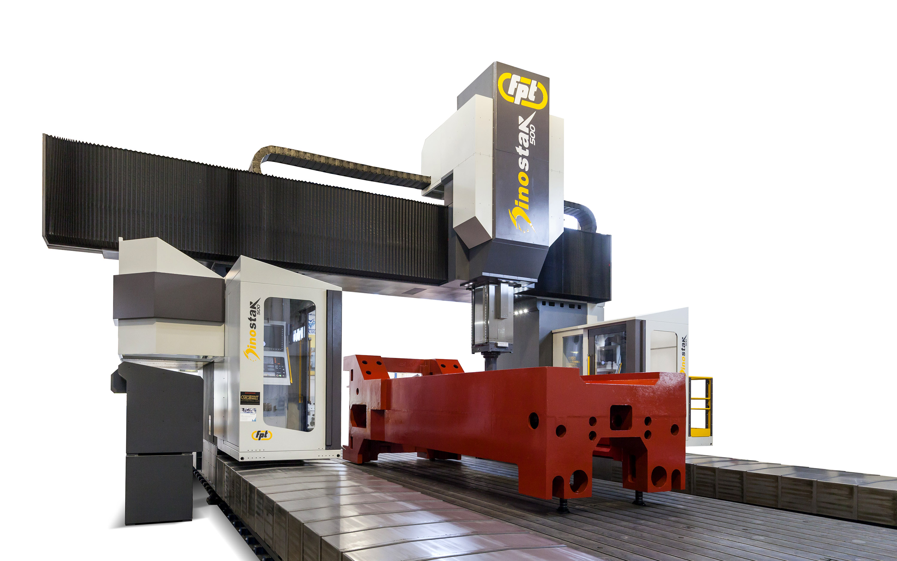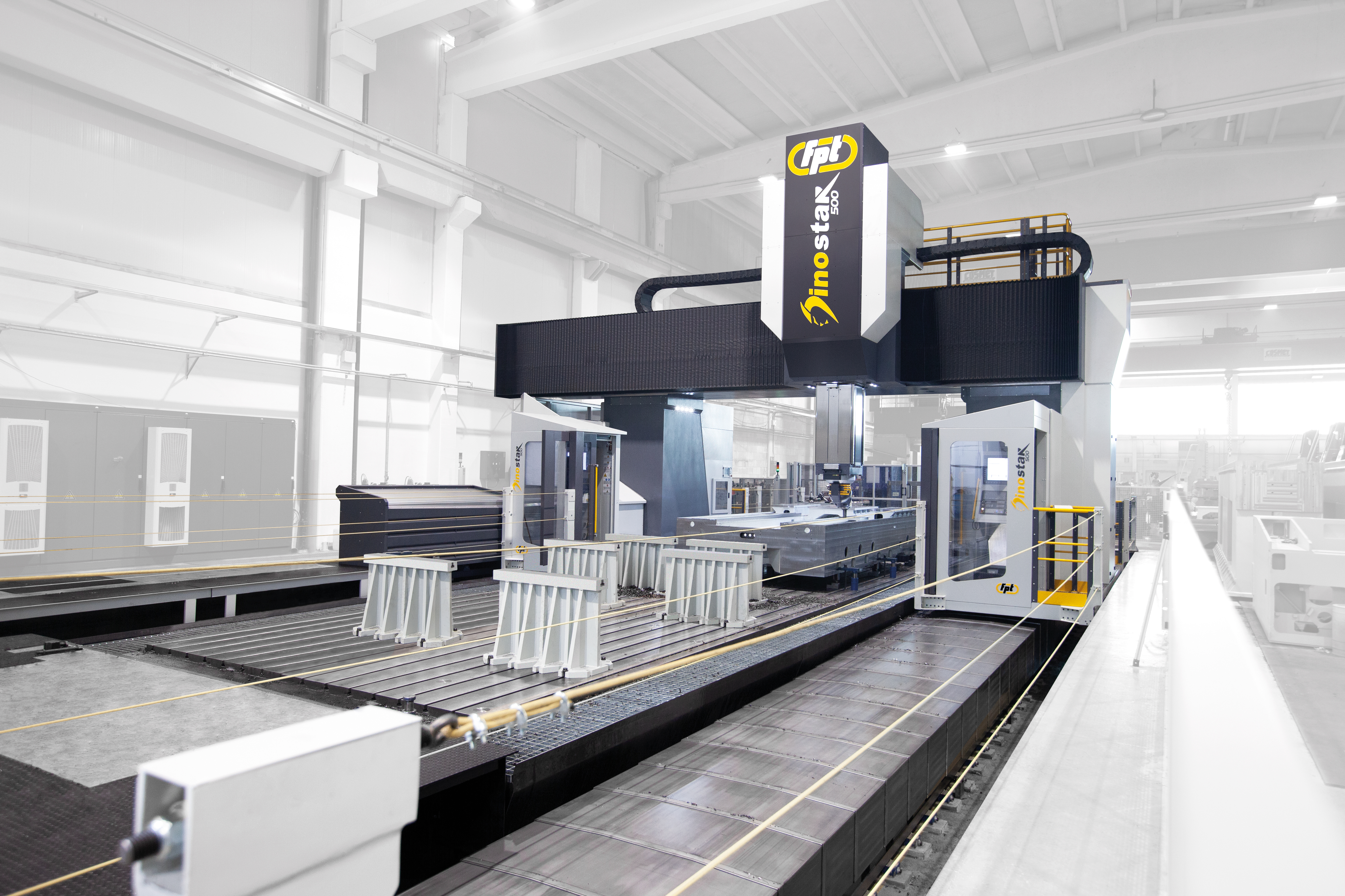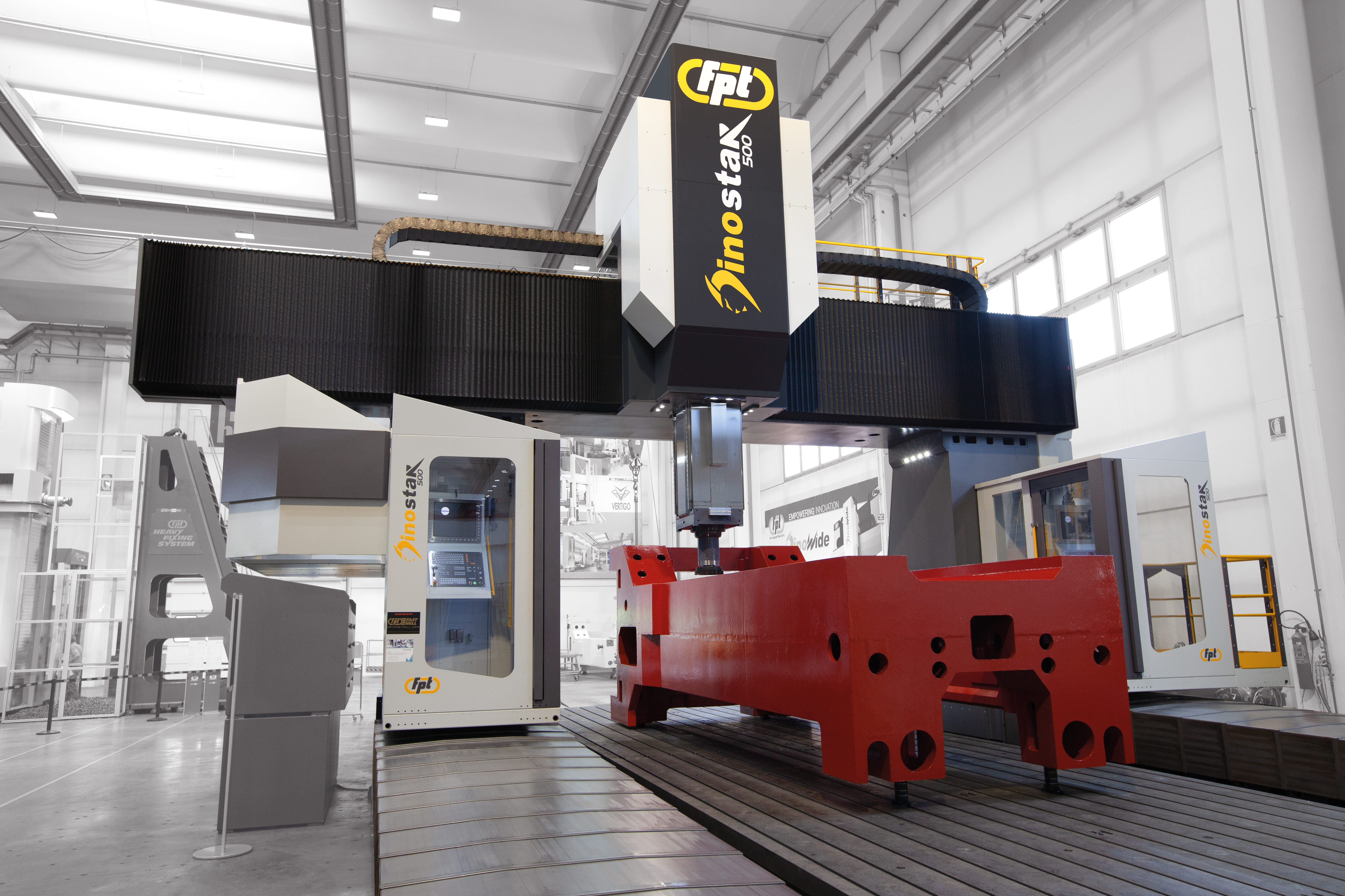 Dinostar is a high-capacity vertical milling machine designed for precision machining of very large components. Equipped with a gantry-type structure and advanced FEM-optimized cast-iron frames, Dinostar ensures maximum rigidity, vibration damping, and accuracy during the most demanding machining cycles. Ideal For |